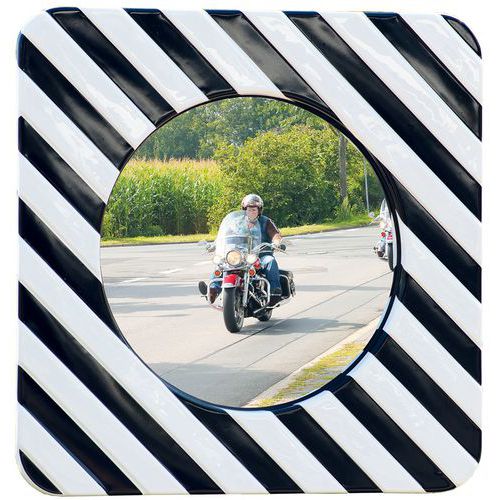Trafikspegel för att förbättra säkerheten och minska risker i potentiellt farliga områden, vit/svart ram i enlighet med dekret av 1981-09-21. Tack vare metalliseringen av optiken erbjuder den utmärkt bildåtergivning utan förvrängning. Mycket motståndskraftig: testad för att klara Beufort 12-vindar (orkanhastigheter över 117 km/h). Fyrpunktsfäste för stolpar eller väggar med kulled, solidare än ett konventionellt fäste. Akrylversion: starkare än glas. Tillverkad i EU