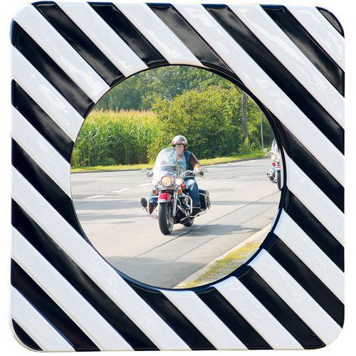 Trafikspegel ger optimal sikt även i vinterväder. Tack vare sin rostfria spegel och speciella kuddar som används på baksidan förhindrar den isbildning på spegelytan. Utmärkt bildåtergivning utan förvrängning genom metallisering på baksidan. Mycket motståndskraftig, den har testats mot våldsamma vindar med styrka 12 (orkanhastigheter över 117 km/h). Beständig mot UV, höga temperaturer och kemikalier, nästan oförstörbar. Tillverkad i EU