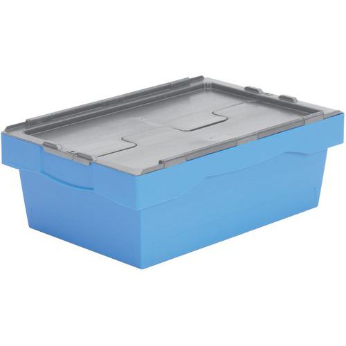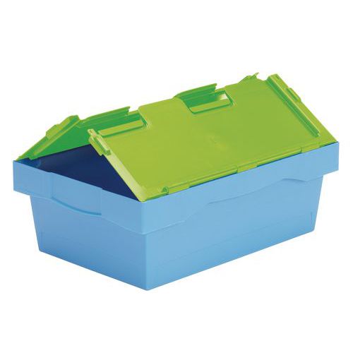 Färgerna på locken gör det möjligt att se var i logistikflödet de befinner sig. Multifunktionell: kan användas i både manuell och automatiserad hantering. Plomberbart och låsbart lock säkrar innehållet. Sparar plats: tomma backar kan staplas i varandra. Perfekt för industri, detalj- och grossisthandel. Tillverkad i EU Maximal last (kg) : 25