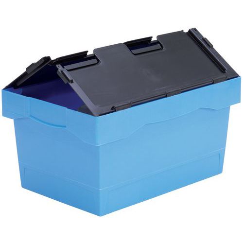 Färgerna på locken gör det möjligt att se var i logistikflödet de befinner sig. Multifunktionell: kan användas i både manuell och automatiserad hantering. Plomberbart och låsbart lock säkrar innehållet. Sparar plats: tomma backar kan staplas i varandra. Perfekt för industri, detalj- och grossisthandel.