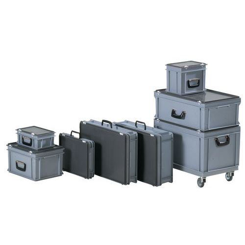 Tättslutande lock med självlåsande fjädrar som förbättrar säkerheten. Stapelbar, utrymmesbesparande back. Metallgångjärn som förbättrar hållfastheten. Släta väggar för enkel rengöring. Tillverkad i EU