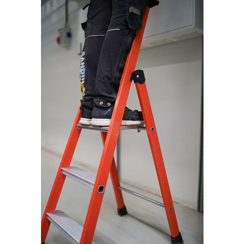 - Trappstege Glasfiber, en stabil trappstege med vagnstycken i glasfiber samt steg och plattform i aluminium.