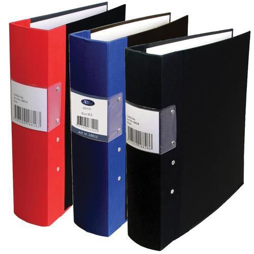 - Gaffelpärm med tygklädd rygg, etiketthållare av plast och med en gedigen gaffelmekanism. Hålning: Svensk hålstandard.