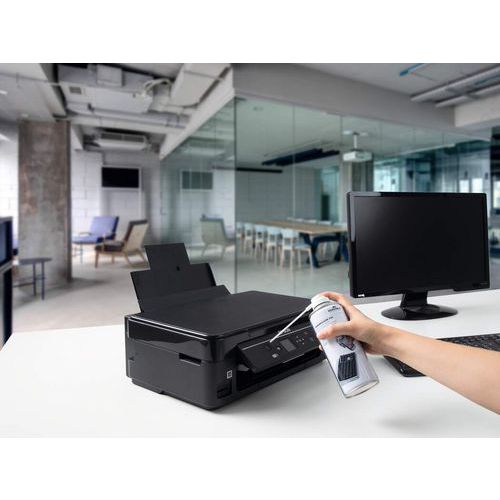 - Tryckluft på burk med rörmunstycke för praktisk åtkomlighet och precis användning.