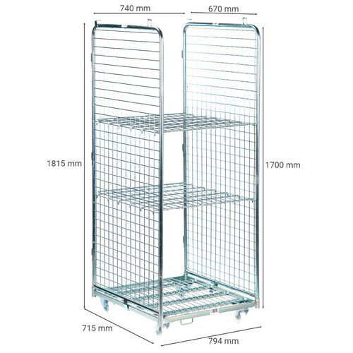 | Varunamn | Rullcontainer tvåsidig, Kapacitet: 400 kg, Total höjd: 1815 mm, Längd totalt: 794 mm, Antal sidor: 2 |