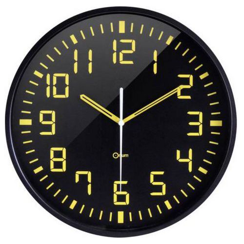 Tyst väggklocka Contrast med kvartsverk, Klockdisplay: Analog (nål), Form: Rund, Färg: Svart/gul, Ø: 40 cm
