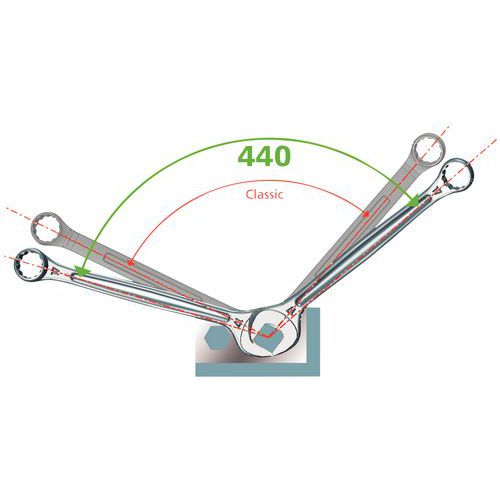 - Enkel åtkomst till muttrar i serie eller delvis infällda: med plats för ringen, vinklad 15°.
