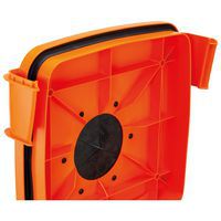 - Det robusta locket har gummitätning, stabilt lås och ett praktiskt inkast som gör att burkar kan slängas även när behållaren är stängd.