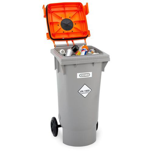 UN-godkänd avfallsbehållare för aerosoler, Färg: Grå Orange, Volym: 120 L, Total höjd: 96 cm