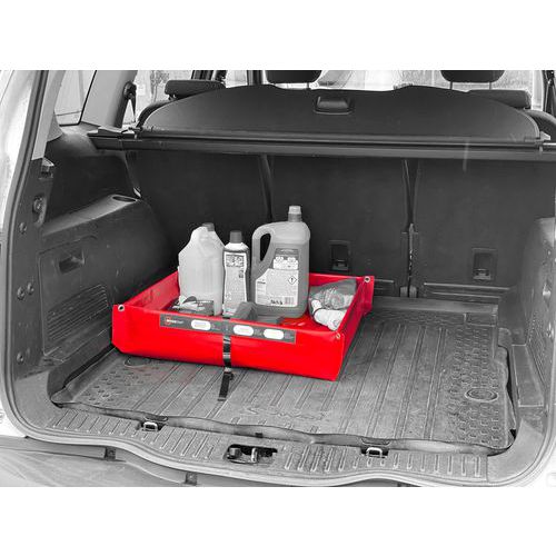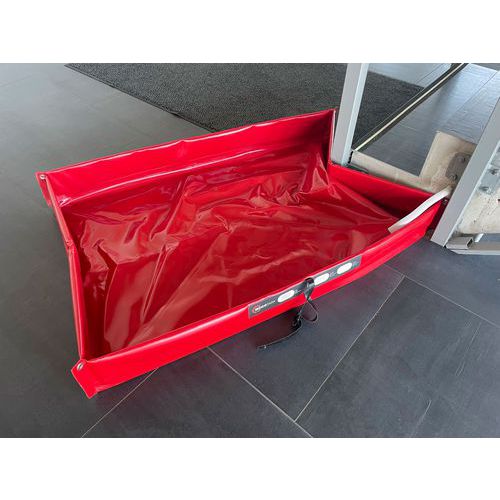 Uppsamlingskärlet är tillverkat av belagd PES/PVC-väv med hög kemikalieresistens och är lämpligt för uppsamling av olika typer av farliga vätskor, såsom syror, alkaliska ämnen och petroleumprodukter. Stabiliteten säkerställs genom svetsade hörn och förstärkta kanter av polypropen. Kärlet kan anpassas efter svåråtkomliga ytor och hinder tack vare segmenterade förstärkningar som möjliggör flexibel formgivning. Vid transport hålls kärlet hopfällt med en rem försedd med plastkarbinhake, som enkelt tas bort vid användning. Temperaturområdet är från -30 °C till +70 °C.