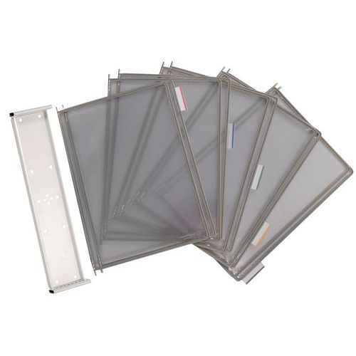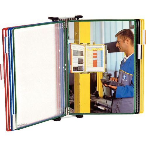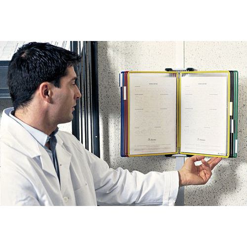 Anpassa stället efter behov - möjligheterna är oändliga! Väggstället passar i alla typer av utrymmen. Hitta lätt bland dina dokument med hjälp av rubrikhållare med olikfärgade insticksblad. Levereras med 10 presentationsfickor i A4-format, 5 rubrikhållare (50 mm) med ofärgade och färgade insticksblad, 4 sidostöd och monteringsmaterial. Tillbehör till Väggställ Tarifold 10.