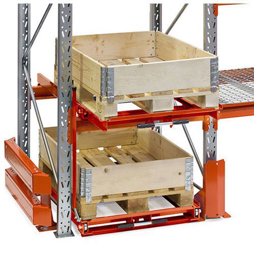 För plockgods på pall. Ger bästa ergonomi vid plockning. Montage på bärbalkar eller golv. Enheten kan låsas i utskjutet läge och frigörs enkelt med handtaget. Välj monteringssats efter dimension på balk, alternativt golvplacering. Kapacitet: 700 kg. Utdragbarhet: 800 mm. Tillbehör till Pallställ.