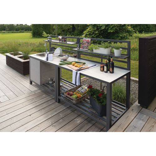 | Varunamn | Utekök Åminne arbetsbänk grå aluminium, Längd totalt: 120 cm, Form: Rektangel, Skiva, material: Laminat |