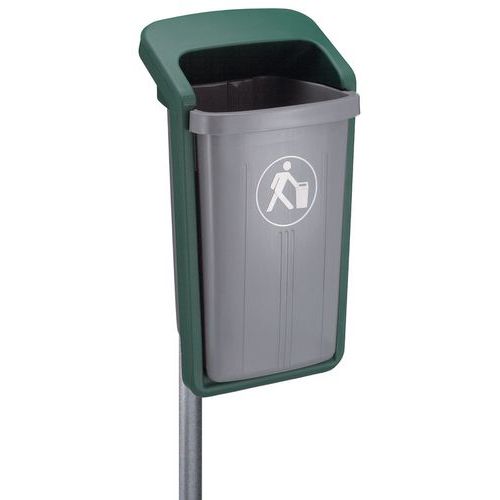 - UV-beständig HDPE-plastavfallsbehållare för vägg- eller stolpmontering.