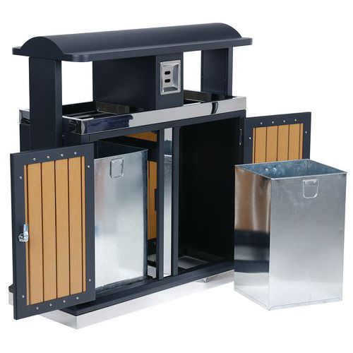 | Varunamn | Utomhuskärl för selektiv sortering, Volym: 100 L, Öppning: Slits, Material: Metall, Soptunna |