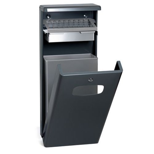- Avfallskärl och askkopp i aluminium med innerkärl i aluminium.