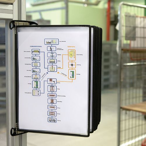 - Magnetisk väggenhet med A4-fickor som enkelt fästs på vilken metallyta som helst.