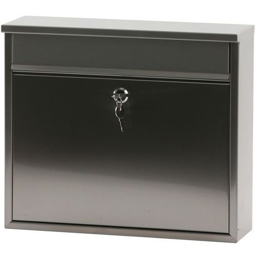 - Vägghängd brevlåda i metall med lock och låsbar lucka framtill. Öppning: 32 x 4 cm.