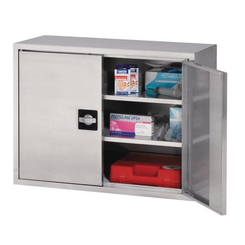 | Varunamn | Vägghängt skåp i rostfritt stål, bredd 80 cm, Material: Stål, Total höjd: 600 mm, Total bredd: 800 mm |