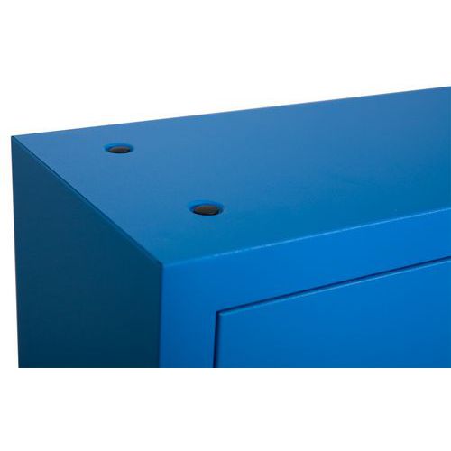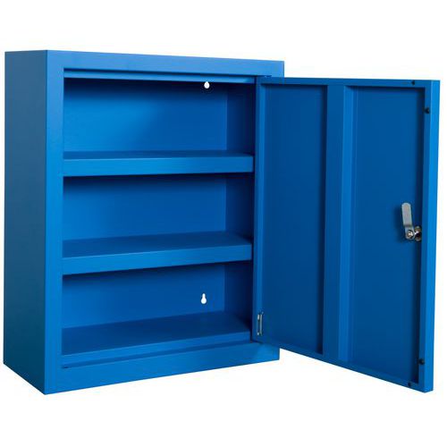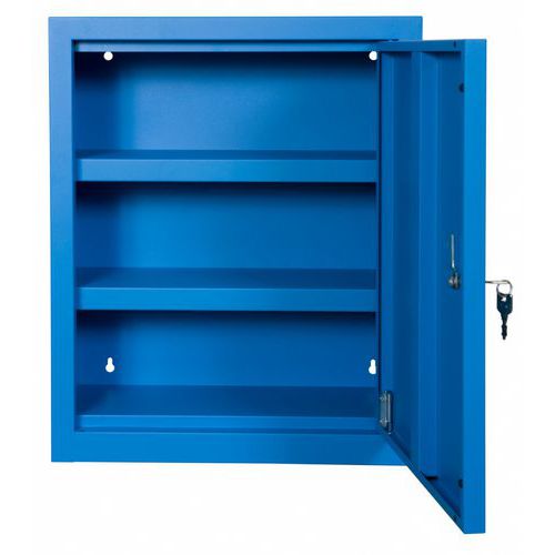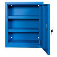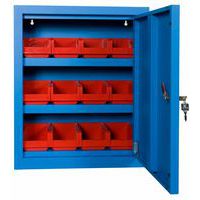 Väggskåp 12 röda plastbackar, Material: Stål, Total höjd: 580 mm, Total bredd: 470 mm, Antal hyllplan: 2