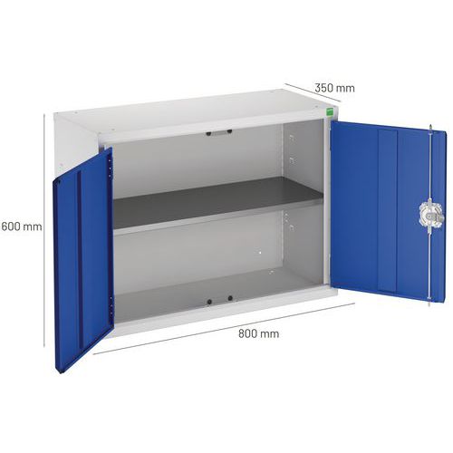 | Varunamn | Väggskåp, Material: Stål, Total höjd: 600 mm, Total bredd: 800 mm, Antal hyllplan: 1, Totalt djup: 350 mm |