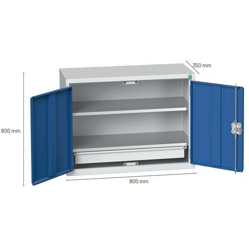 | Varunamn | Väggskåp, Material: Stål, Total höjd: 600 mm, Total bredd: 800 mm, Antal hyllplan: 2, Totalt djup: 350 mm |