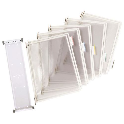 Anpassa stället efter behov - möjligheterna är oändliga! Väggstället passar i alla typer av utrymmen. Hitta lätt bland dina dokument med hjälp av rubrikhållare med olikfärgade insticksblad. Levereras med 10 presentationsfickor i A3-format, 5 rubrikhållare (50 mm) med ofärgade och färgade insticksblad, 4 sidostöd och monteringsmaterial. Tillverkad i EU