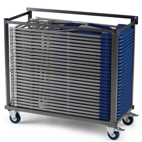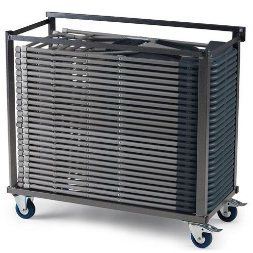 - Försedd med 2 svängbara hjul med broms och 2 fasta hjul.