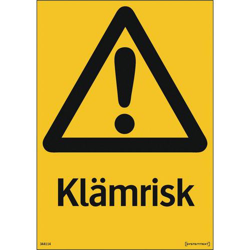 | Varunamn | Varningsskylt med SE text, Självhäftande: nej, Oböjbar: ja, ISO norm 7010: ja, Skylt, form: Rektangel |