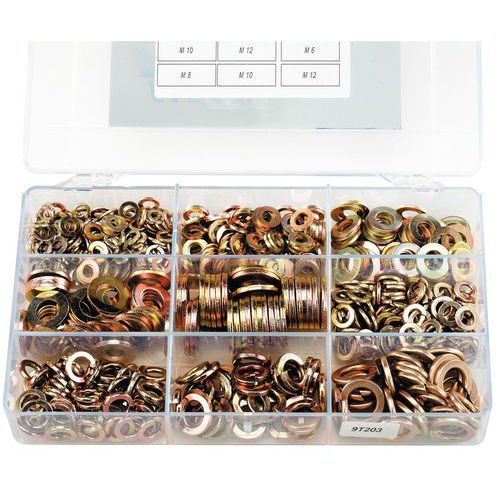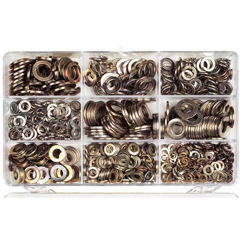 | Varunamn | Väska med platta brickor och fjäderbrickor – förpackning med 630, Material: Stål, Antal delar: 630 |