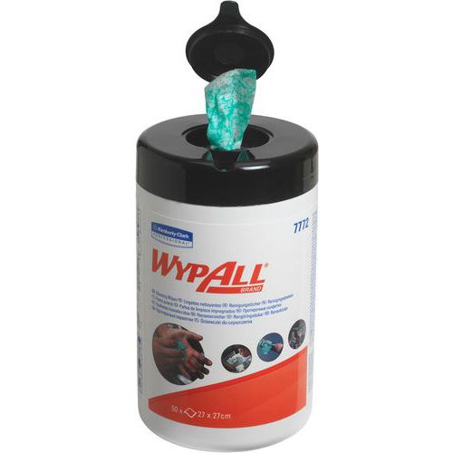 - WypAll våtservetter för engångsbruk tar effektivt bort olja, fett och smuts från händer och verktyg samt torkar upp mindre spill.