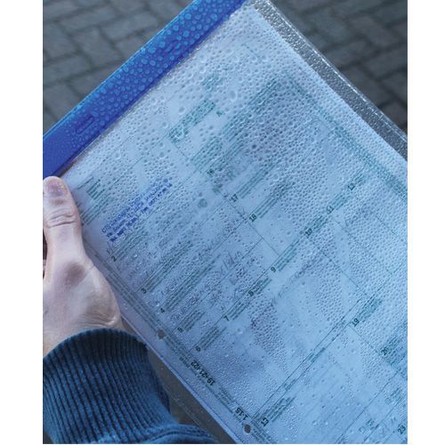 Välj mellan 3 olika infästningar: magnetiska, självhäftande eller tie-on-infästningar. De översta hålen i panelen möjliggör insättning i pärmar med 2 eller 4 ringar. Perfekt för användning i externa inredningar. Dessa fickor med industriell styrka kan inte bara användas invändigt, utan den väderbeständiga pressförseglingen gör dem även perfekta för användning utvändigt. Fickorna är tillräckligt stora för att rymma A4-papper, pennor och andra föremål som krävs, perfekt för att hålla viktiga dokument rena och torra. Fickorna kan fås i liggande eller stående format och med antingen magnetiska, självhäftande eller tie-on-infästningar. De magnetiska versionerna kan användas på de flesta stålytor och kan enkelt lyftas och flyttas vid behov. Självhäftande infästningar är ett alternativ för permanent infästning och tie-on-versionen kan fästas runt en diameter på som mest 60 mm, vilket gör dem perfekta för plockvagnar, rullburar och nätburar. Håller dokumenten rena och torra. Fastsättning med pressförsegling gör dem idealiska för användning där de exponeras för vind eller regn. A4 stående eller liggande.