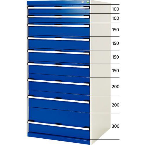 | Varunamn | Verkstadshurts Bott SL-87 160 cm, Maximal last: 1500 kg, Material: Stål, Total höjd: 1600 mm, Antal lådor: 9 |