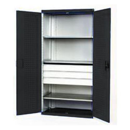 - Inredning: 3 st lådor höjd 125 mm med fullt utdrag (100%) 75 kg kapacitet. 3 st fasta hyllplan med 100 kg kapacitet.