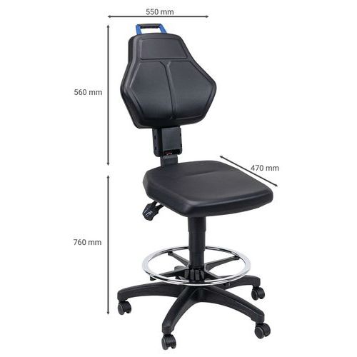 | Varunamn | Verkstadsstol, Sits, material: Konstläder , Ryggstöd: ja, Modell stolar: Hög, Fotring Ø: ja |