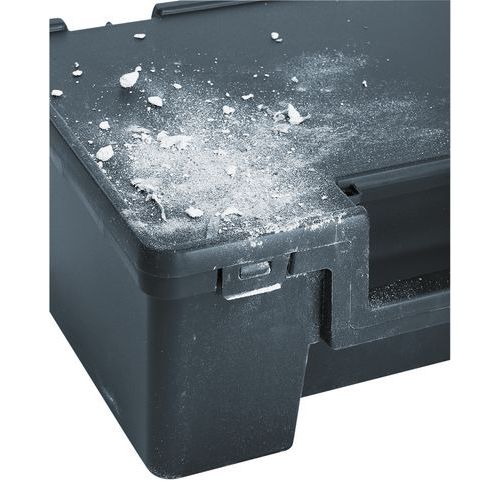 Skydd mot vattenstänk och damm. Stapelbar verktygslåda. Stort bärhandtag. Kan låsas med hänglås. Utformad enligt europeiska normer för lastpallar.