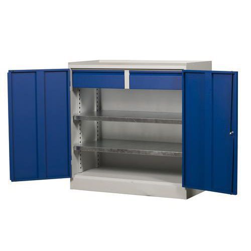 - Till varje verktygsskåp medföljer två styck kraftiga hyllor i galvaniserat utförande.