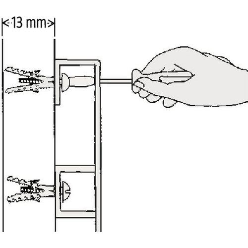 Fyrkantshål 9 mm med centrumavstånd 38 mm.