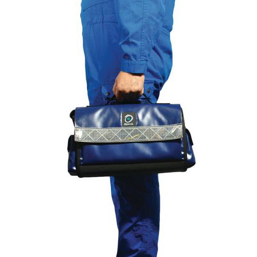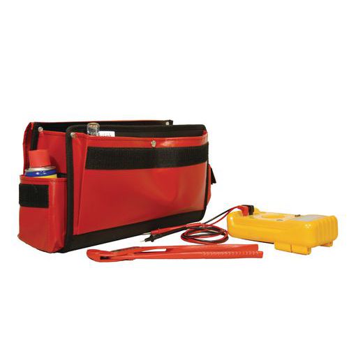 Mycket lätt att tömma. 1 främre ficka, 2 sidofickor, 1 verktygspalett med fickor.