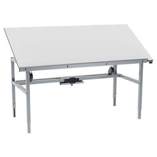 - Manuellt arbetsbord med elektriskt ställbar lutning på bordsskivan, anpassat för en jämnt fördelad belastning upp till 160 kg.