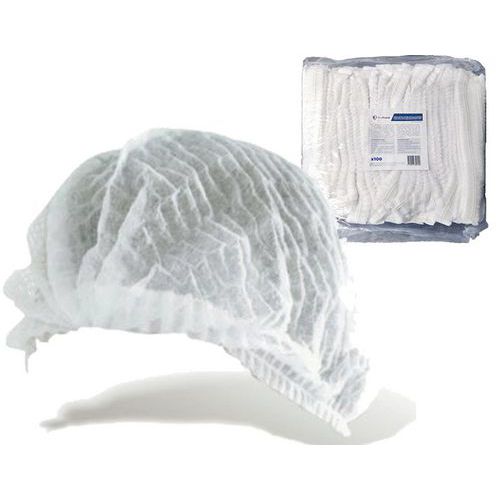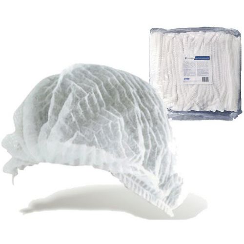 - Vit, rund hätta av latexfri, non-woven polypropen.