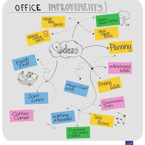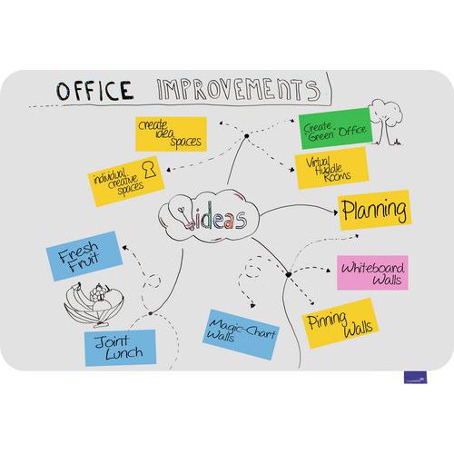 - Den magnetiska emaljytan är reptålig, enkel att skriva på med torra whiteboardpennor och ger ett utmärkt avtorkningsbart resultat.